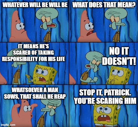He didn’t say whatever sows itself meaning you are responsible for what you sow and what you reap—not God or life or anyone else other than you.